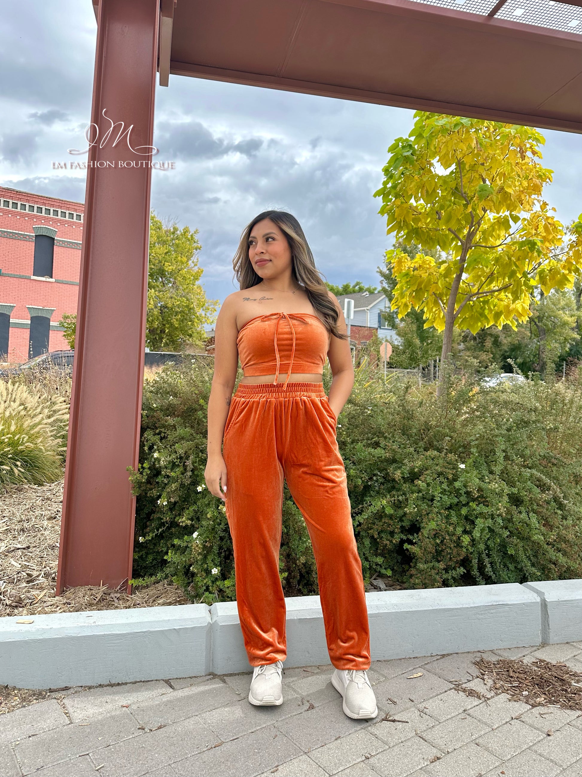 This Velvet Tube Top & Pants Set provides a comfy, relaxed fit for effortless style. Its buttery-soft velvet is perfect for lounging in style. Whether hanging out at home or running errands, this set will keep you effortlessly comfortable and stylish.
